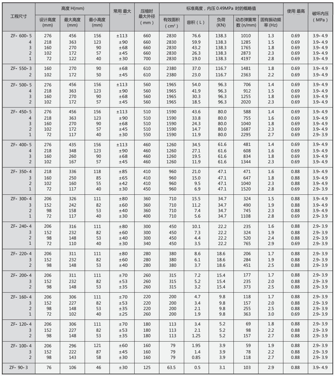 ZF型自封式空气弹簧(冲床设备专用)介绍: